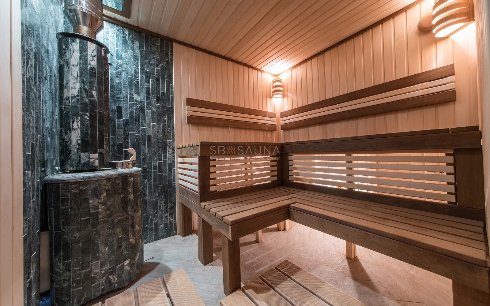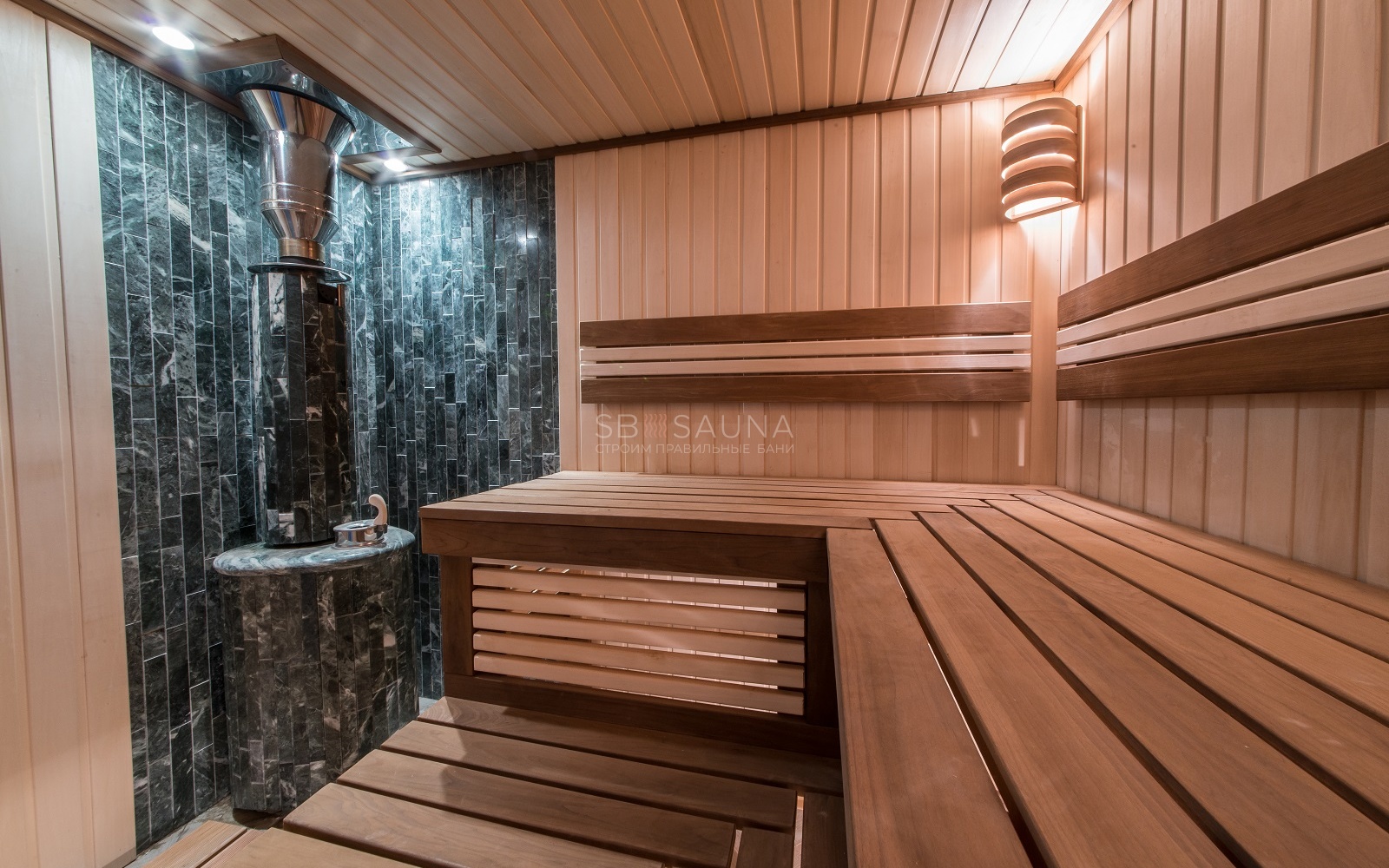 Для создания мягкого света мы выбрали светильники для саун и бань Cariitti
